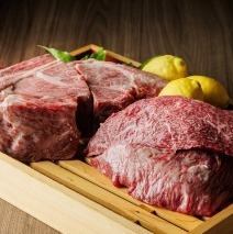 魚だけではありません!上質な和牛を使ったメニューもお楽しみいただけます◎オススメは、お肉の旨味をダイレクトに感じられるステーキ。程よく”サシ”が入った王道のサーロインステーキと、柔らかくジューシーな味わいのイチボのステーキをご用意◎特製タレ&ネギ塩たれでお召し上がりください♪